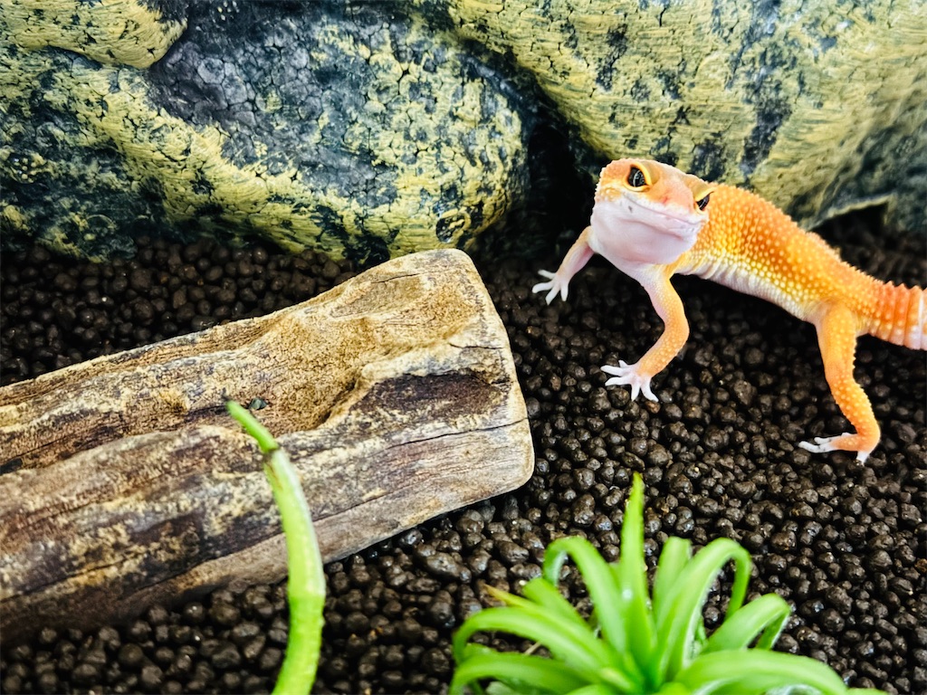 わが家に初めてのペットがやってきた🦎f:id:Rayato:20241222191242j:imageヒョウモントカゲモドキ(レオパードゲッコー)のレオ様♡爬虫類ショップのイベントに行ってきて、お店の子とこの子でちび太がめちゃくちゃ悩んでたけど、私はこの子推し。めちゃくちゃ目が可愛いし、モルフも美しくて。。お迎えの準備もギリ間に合って、当日ガラスゲージやらヒーターやら到着!!買って帰ったらすぐ準備できる状態。。完璧♡当たり前だけど、なにもかも初めてで正解がわからないけど、なんとかそれらしくゲージ内も出来上がり。レオ様ものんびりしている様子?めちゃくちゃスローで目を離したらどっか行っちゃってるっていうのが笑える。たいてい隠れ家に入ってっちゃってるんだけど、奥に潜んでるから実際消えた、、みたいになってる笑。朝起きたらゲージ内も28℃くらいでいい感じ。水飲み場から水飲んでくれたり、f:id:Rayato:20241222191222j:image個性的なうんちもしてくれて安心した。f:id:Rayato:20241222191230j:imageあとは夕飯ちゃんと食べてくれるかが気になるところ。ブリーダーさんは、コオロギをあげてたみたいなんだけど、わが家は人工フード。慣れてもらうしかない!!頑張りまーす♪